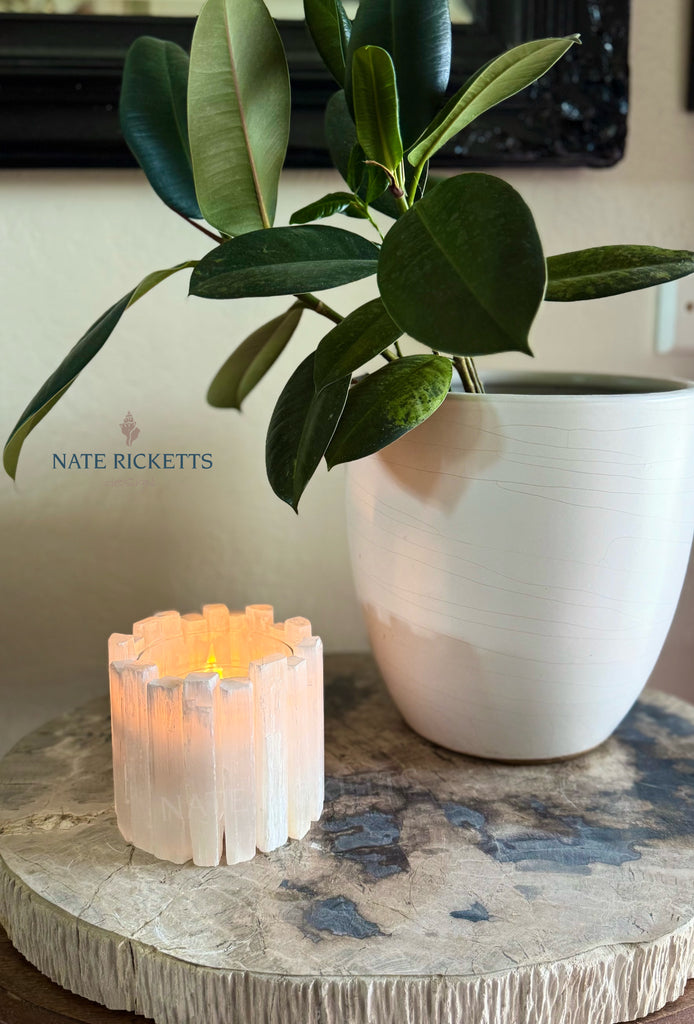 Looking for other similar votives? Check out the selenite hurricane votives here and the selenite tealight votives here!