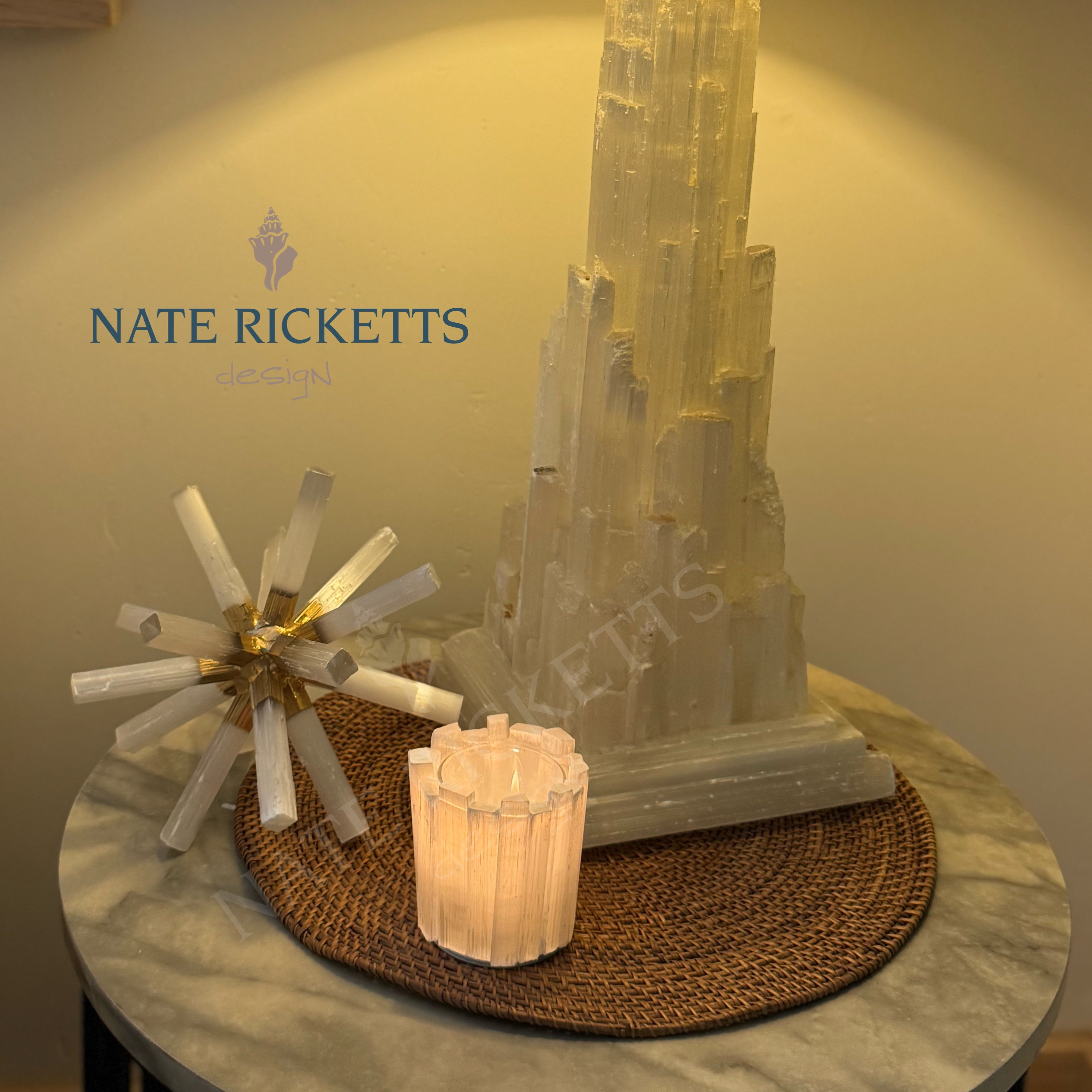 Looking for larger votives in this style? Check out the selenite hurricane votives here!