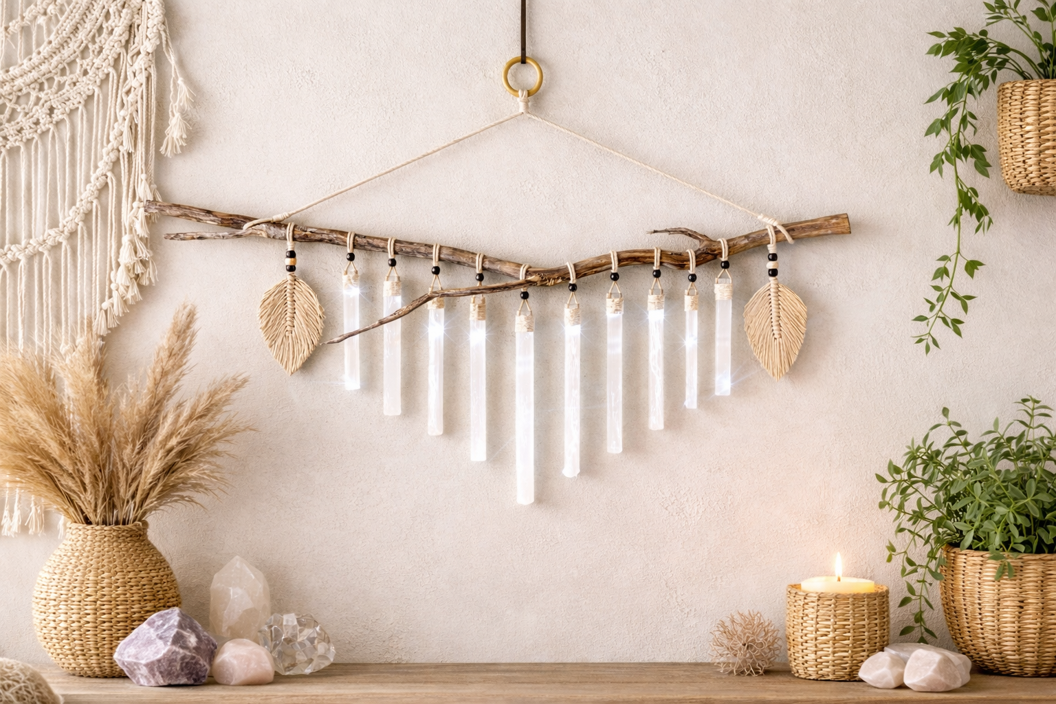 Selenite Crystal Waterfall Wall Hanging