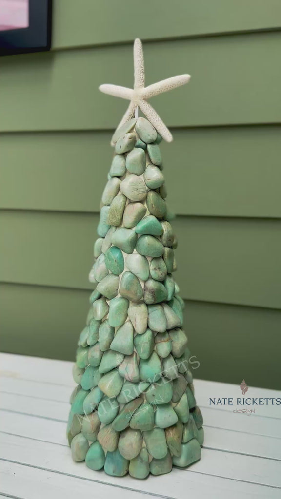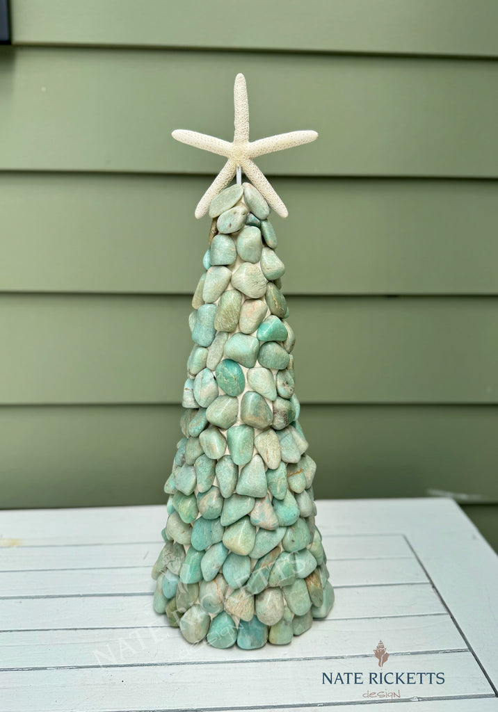 Bring calming beauty into your space with this Amazonite Crystal Tree handcrafted with polished Amazonite pebbles. known as the "Stone of Courage and Truth".