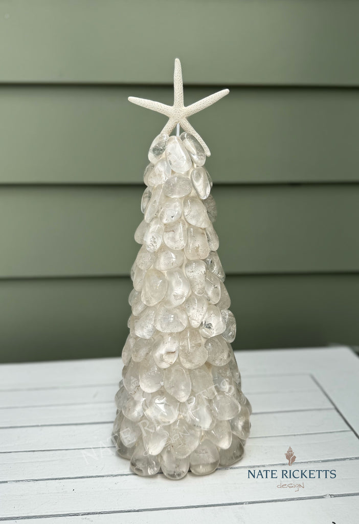 Gracefully arranged large Quartz pebbles with a sea star at the top adds a touch of sparkle to any space.